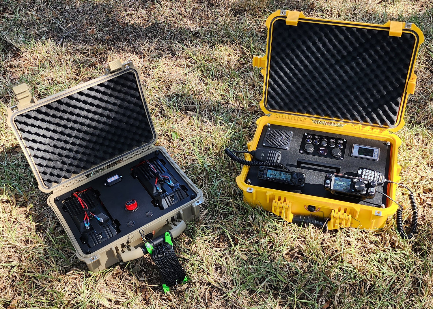 Packed with the Yaesu FT-891 and FTM-510 radios, DROK power management, integrated cooling, and solar charge control — all mounted on a powder-coated aluminum plate inside a rugged Go-Box built for the field or shack.