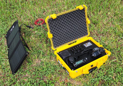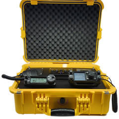 This rugged, portable Go-Box is built into a weather-resistant Apache 4800 case (available in black, green, orange, tan, and yellow) and designed for a licensed ham radio operator.